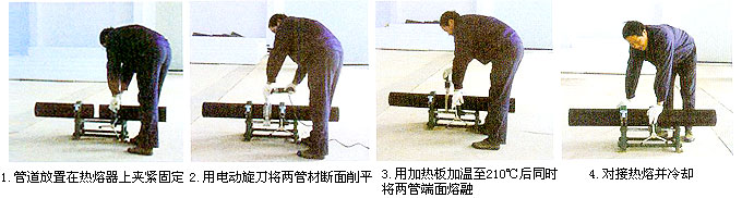 熱熔對接是采用熱熔對接焊機來加熱管端(熱熔對接溫度為210+10℃),待管端熔化后,迅速將其貼合,保持一定的壓力,經冷卻達到熔接的目的。適用管徑范圍:dn≥90mm
